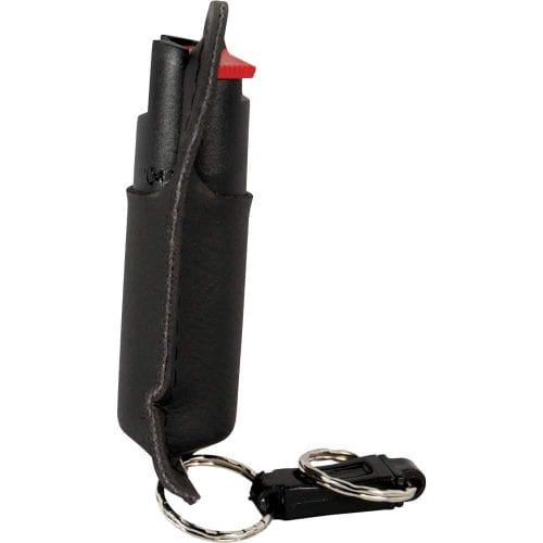 Pepper Shot 1.2% MC 1/2 oz Halo Holster and quick release keychain black. Pepper Shot Pepper Spray is made with 1.2% Major Capsaicinoids. The Major Capsaicinoids are the true heat measure and Pepper Shot 1.2% MC is more effective than of most other pepper sprays. In addition to causing an attacker pain, The Pepper Shot 8.5% oleoresin capsicum formula swells the mucous membranes, which makes breathing difficult, and swells the veins in the eyes, causing the eyes to close. It’s made from 2,000,000 SHU’s of raw pepper and these effects can last up to 45 minutes and cause no permanent damage. Has a UV identifying dye to help aid in the identification of an attacker.